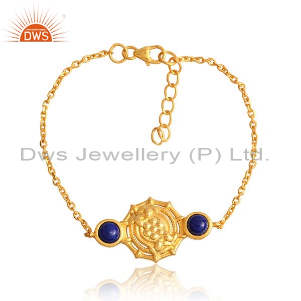 Sterling Silver Gold Bracelet With Lapis Cabochon
