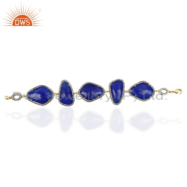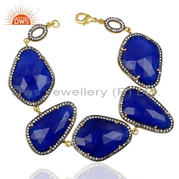 Stunning 14K Gold Plated Handmade Natural Blue Aventurine CZ Fashion Bracelets