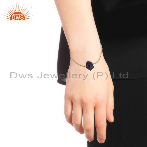 Tanzanite Gemstone Designer 18k Gold Plated Silver Chain Bracelet
