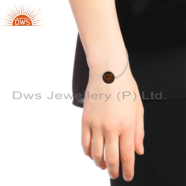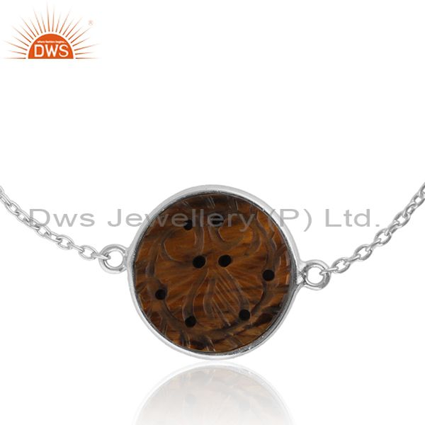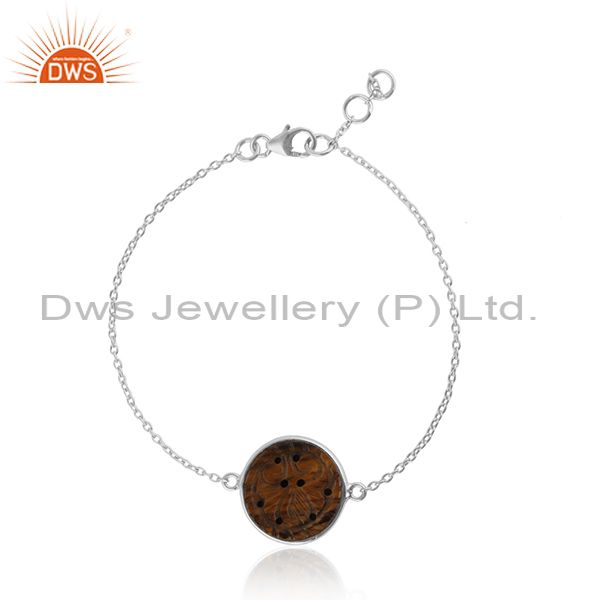 Tiger Eye Gemstone Round Shape Gold Plated 92.5 Silver Bracelet