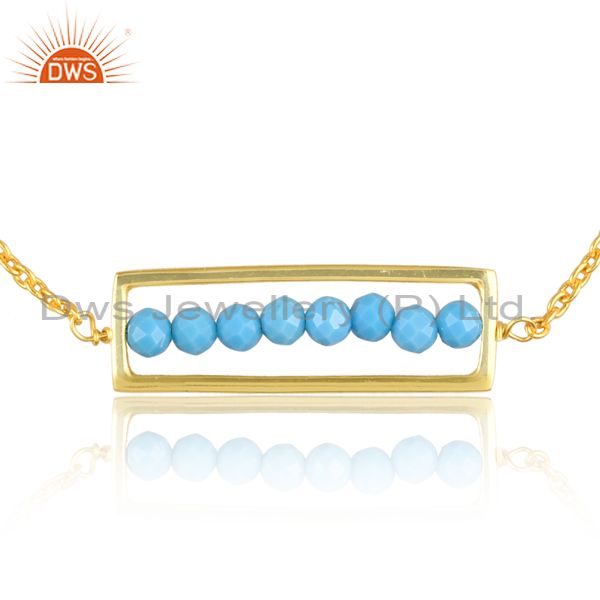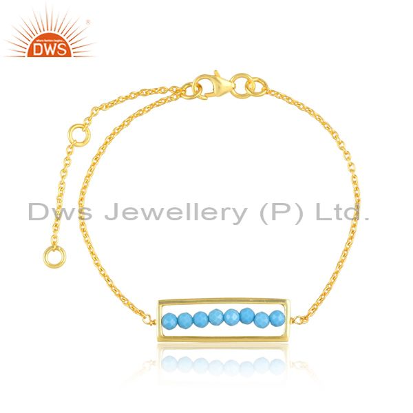 Turquoise Charm Set Gold On Silver Statement Chain Bracelet