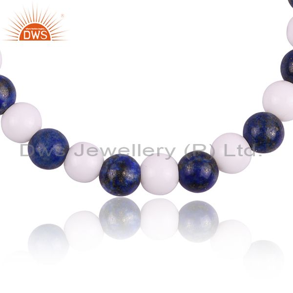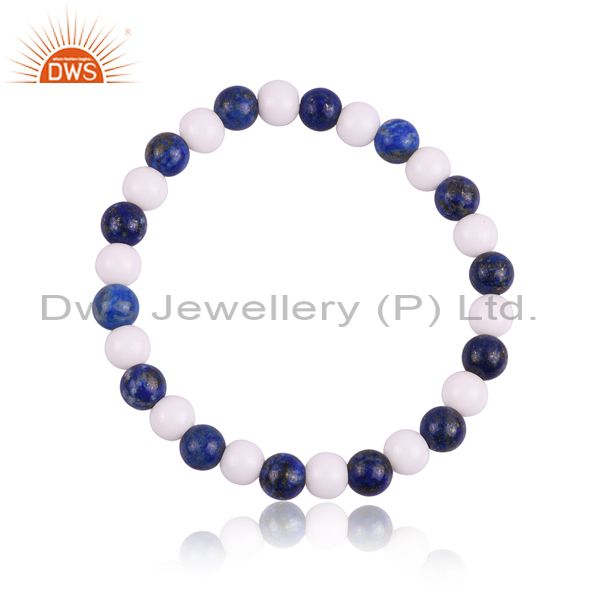 White Agate And Lapis Brass Gold Handmade Designer Bracelet