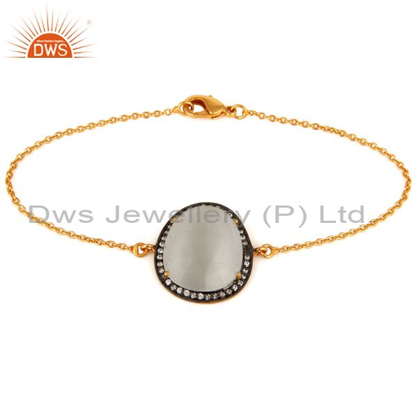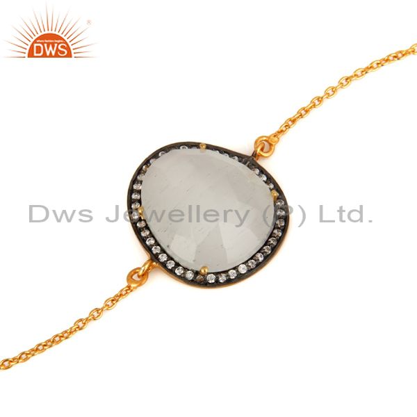White Moonstone & White Zircon 18K Gold Plated Brass Bracelet