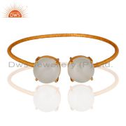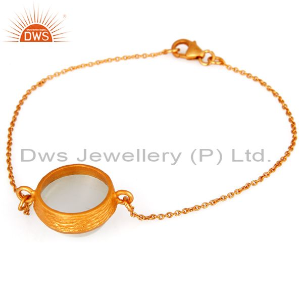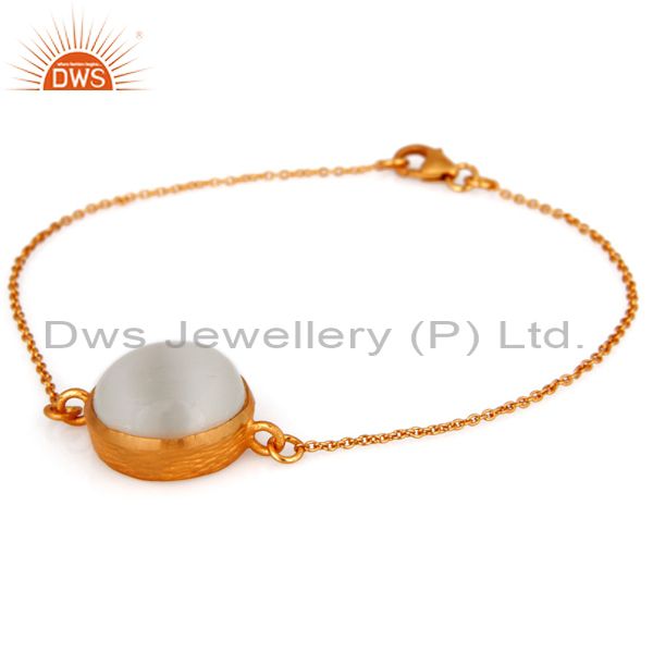 White Moonstone Gemstone Bracelet Gold Plated Sterling Silver Handmade Jewelry