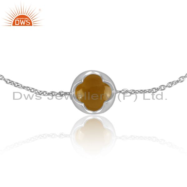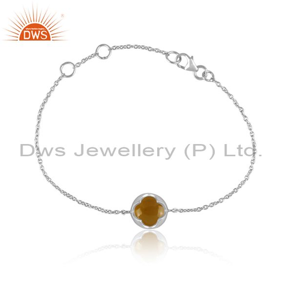 Yellow Chalcedony Set Fine 925 Silver Floral Charm Bracelet
