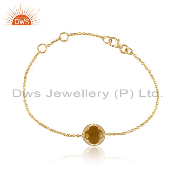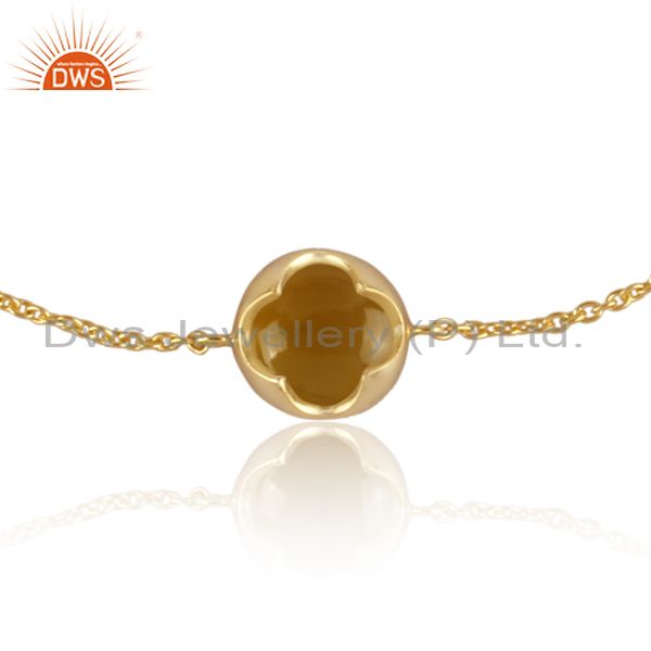 Yellow Chalcedony Set Gold On Silver Floral Charm Bracelet