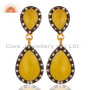 Yellow Moonstone & Cz Pave Gold Plated Sterling Silver Link Chain Women Bracelet
