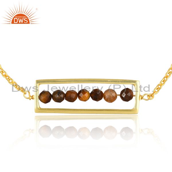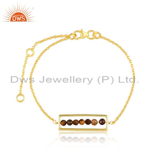Yellow Tiger Eye Charm Set Gold On 925 Silver Chain Bracelet