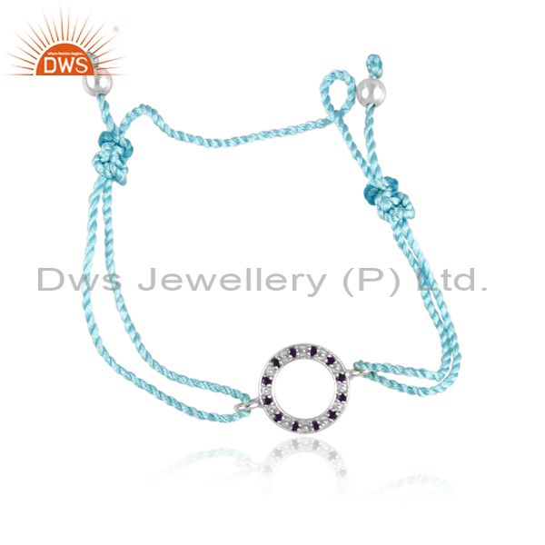 Zircon Amethyst Set Fine Silver Round Cotton Dori Bracelet