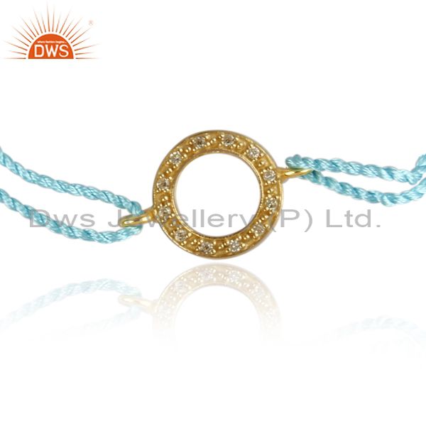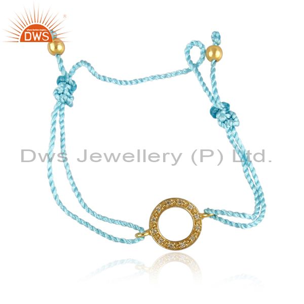Zircon Citrine Set Gold On Silver Round Cotton Dori Bracelet