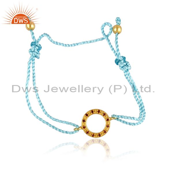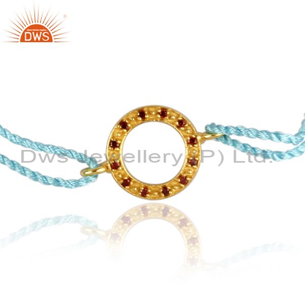 Zircon Garnet Set Gold On Silver Round Cotton Dori Bracelet