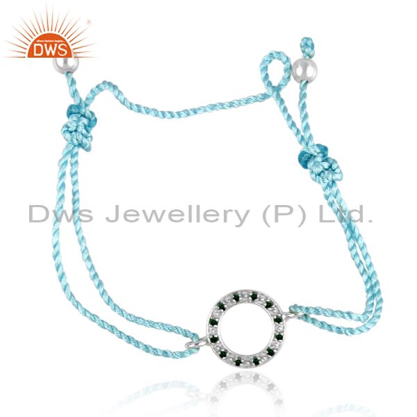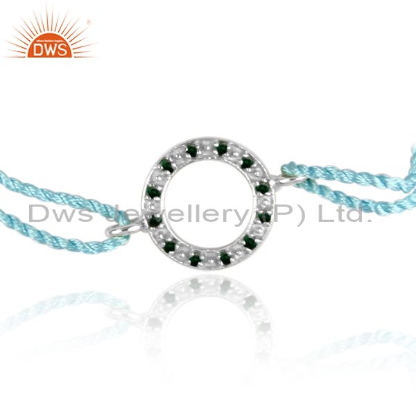 Zircon Green Set Fine 925 Silver Round Cotton Dori Bracelet
