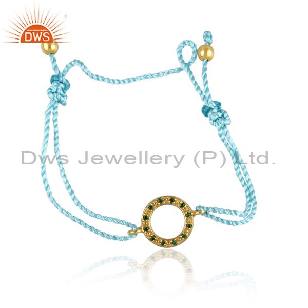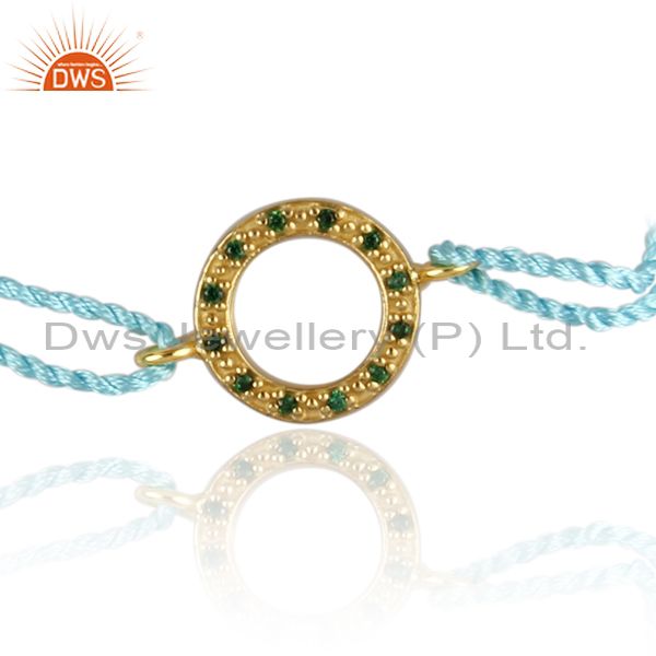 Zircon Green Set Gold On Silver Round Cotton Dori Bracelet