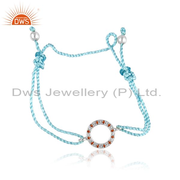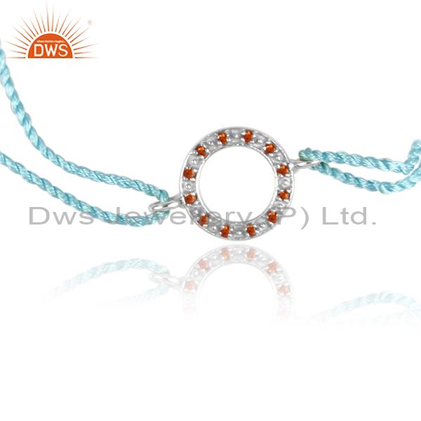 Zircon Orange Set Fine 925 Silver Round Cotton Dori Bracelet
