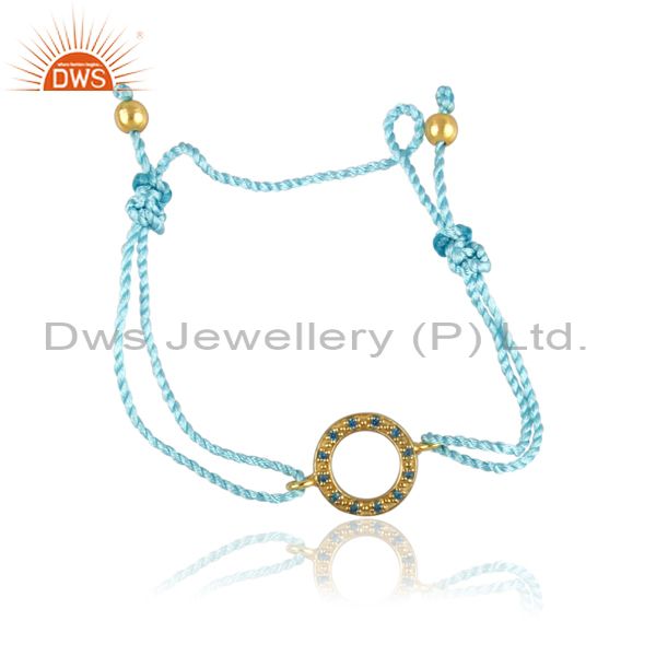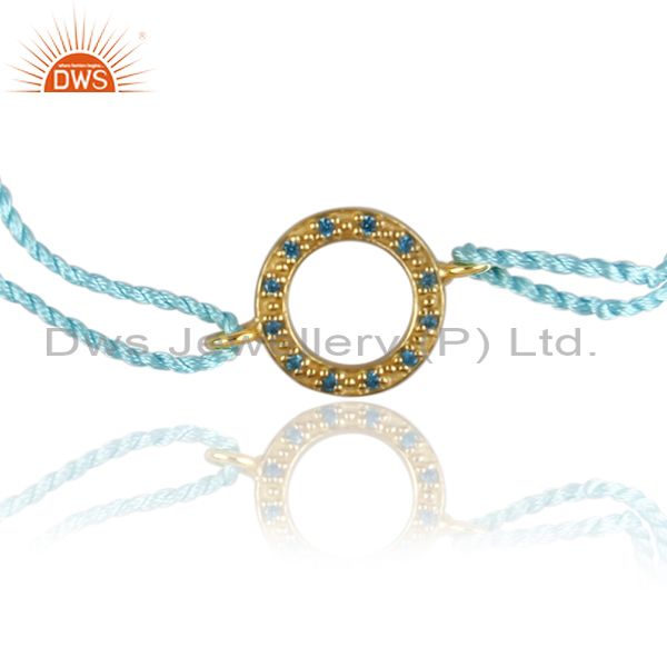 Zircon Swiss Blue Topaz Gold On Silver Cotton Dori Bracelet