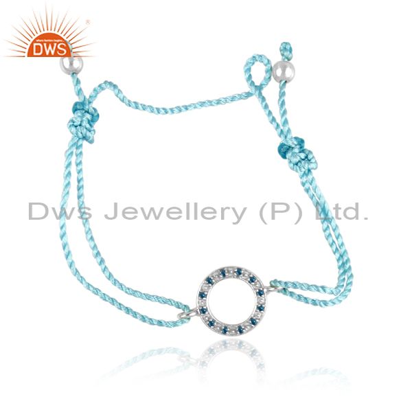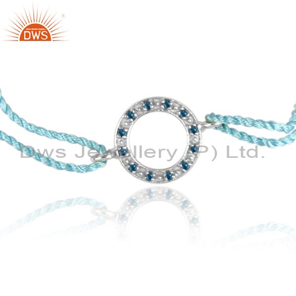 Zircon Swiss Blue Topaz Set Fine Silver Cotton Dori Bracelet