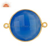 18K Yellow Gold Plated Sterling Silver Blue Chalcedony Bezel Set Charm Pendant