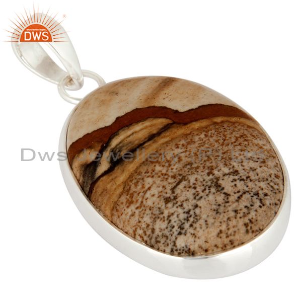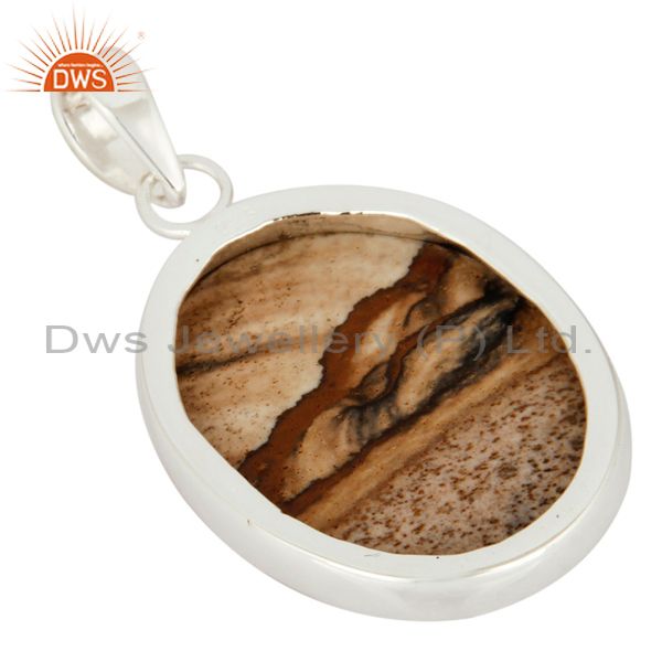 Artisan Hadncrafted Sterling Silver Picture Jasper Bezel-Set Gemstone Pendant