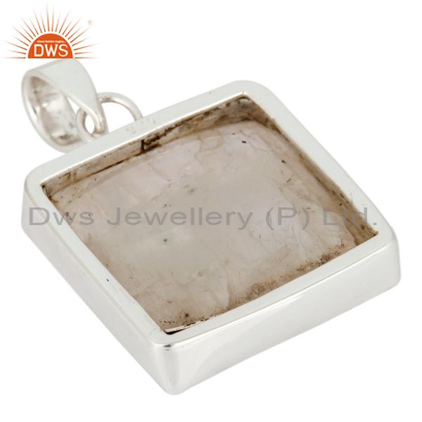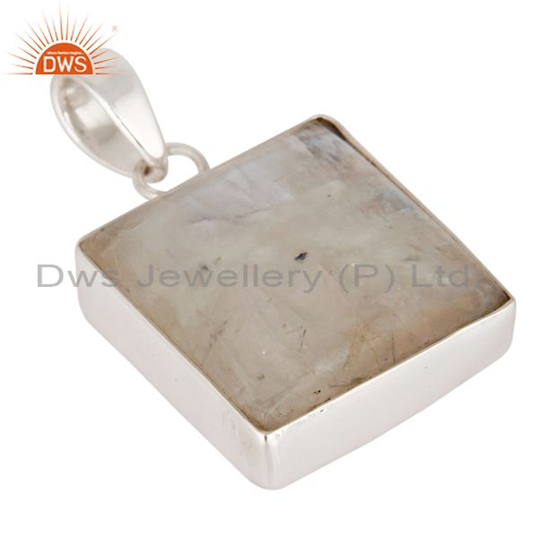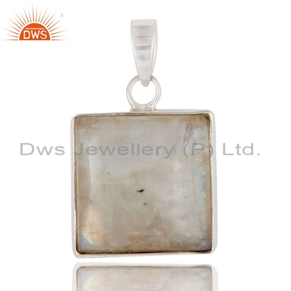 Genuine 925 Sterling Silver Natural Rainbow Moonstone Bezel-Set Pendant