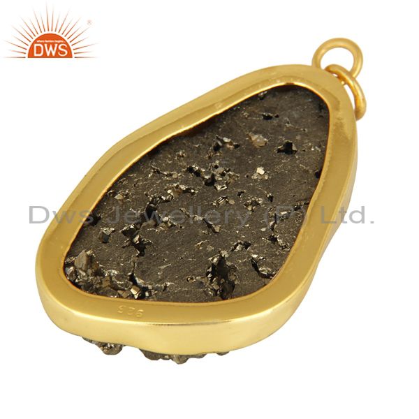 Gold Plated Sterling Silver Pyrite Druzy Pendant - Handmade Designer Jewelry