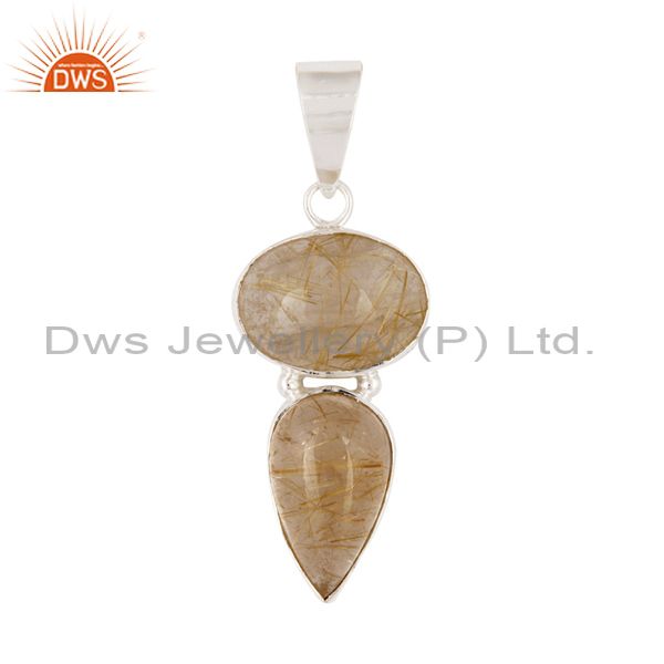 Handmade 925 Sterling Silver Golden Rutilated Quartz Gemstone Pendant