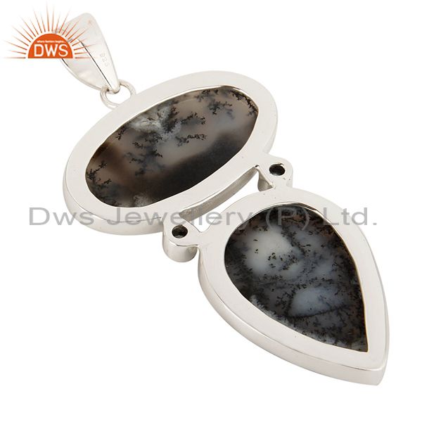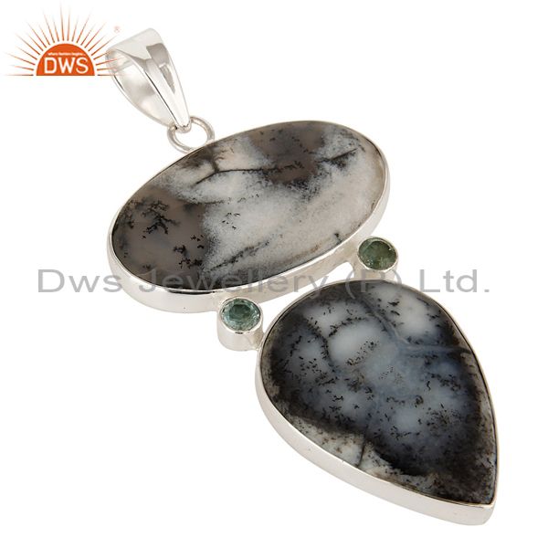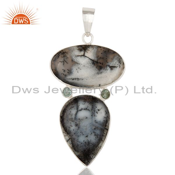 Handmade Dendritic Opal And Blue Topaz Pendant Made In Solid Sterling Silver