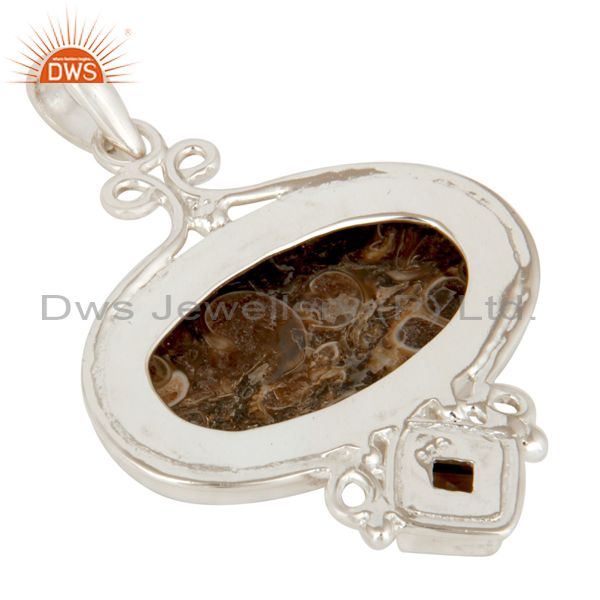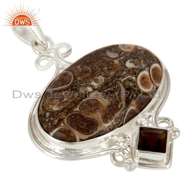 Handmade Turritella Agate And Smoky Quartz Solid Sterling Silver Pendant