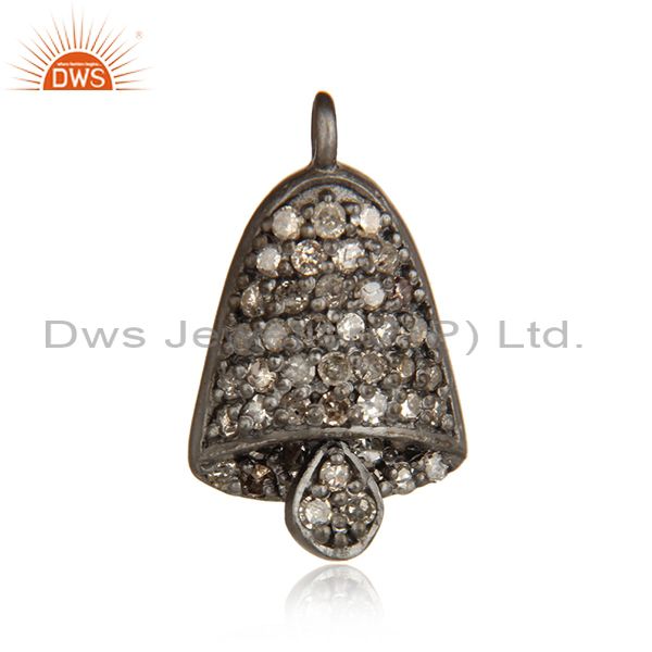 Natural Diamond Pave Set Sterling Silver Christmas Pooja Bell Charm Jewelry