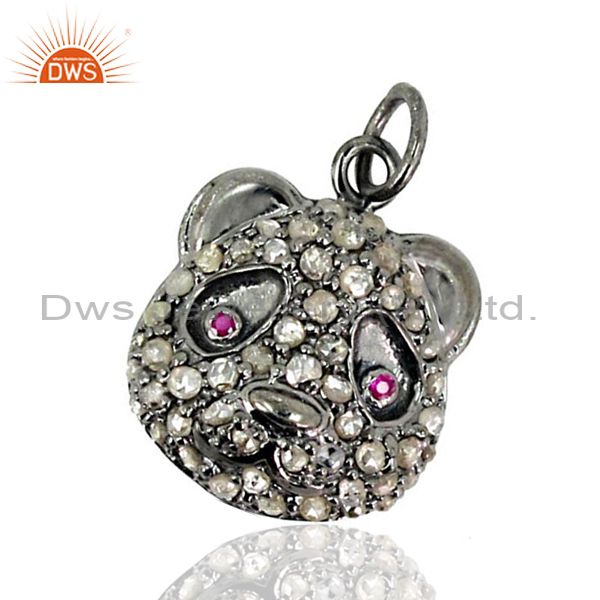Ruby 925 Silver Sterling Diamond Pendant Vintage Look Art Fashion Jewelry New