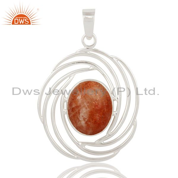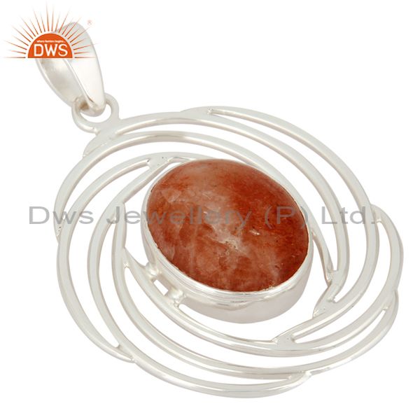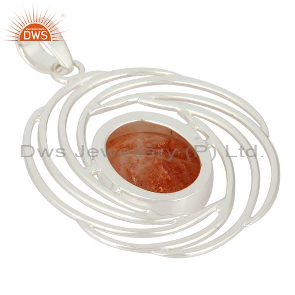 Womens 925 Sterling Silver Designer Pendant With Natural Sunstone