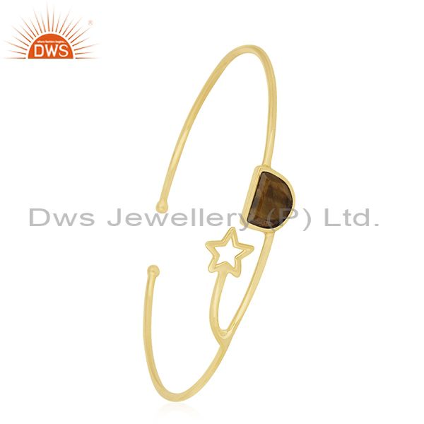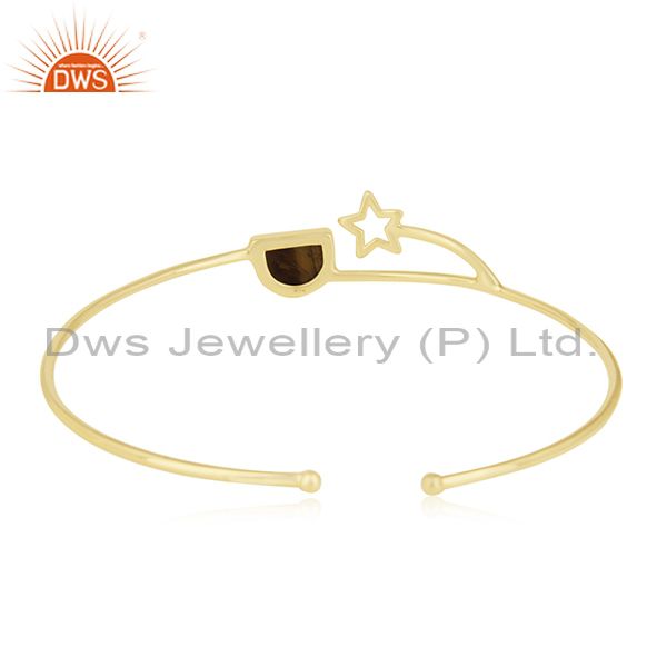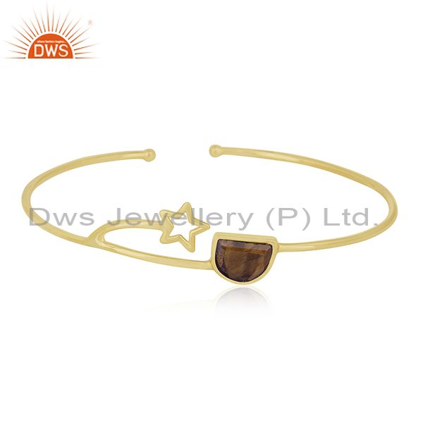 14k Gold Plated 925 Silver Tiger Eye Gemstone Star Charm Cuff Bracelet Wholesale