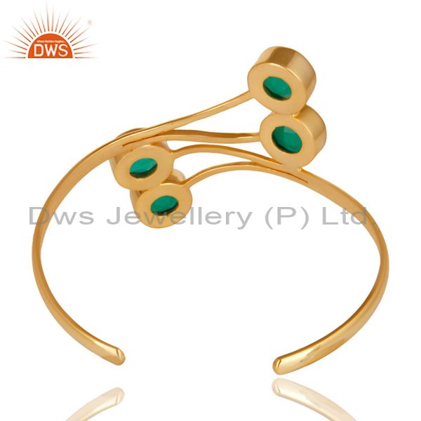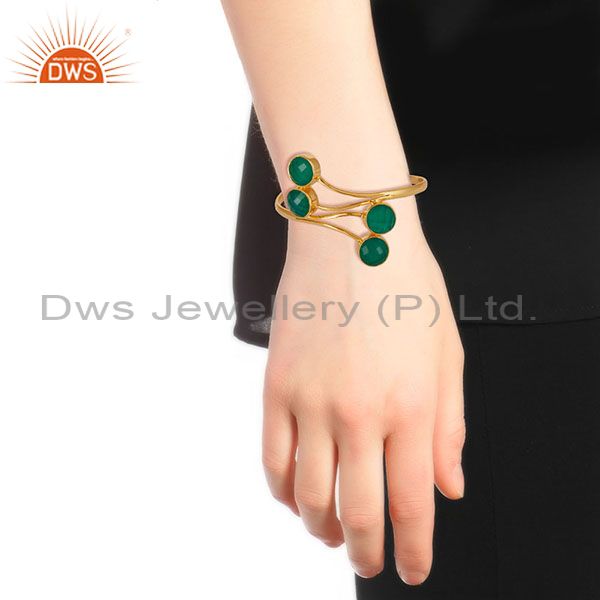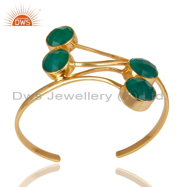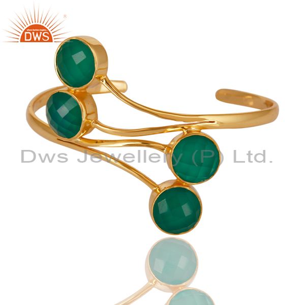 14K Gold Plated 925 Sterling Silver Handmade Green Onyx Wide Cuff Jewelry
