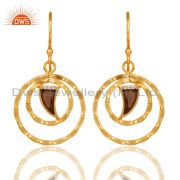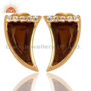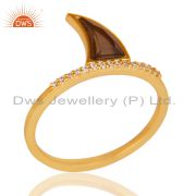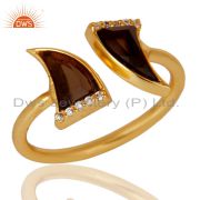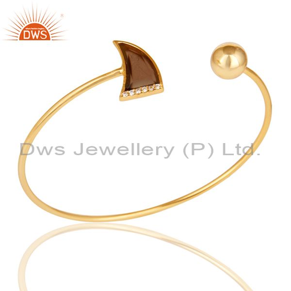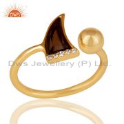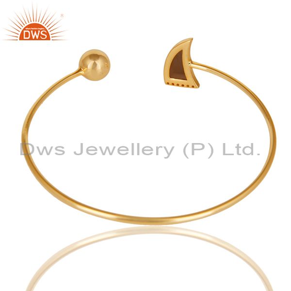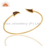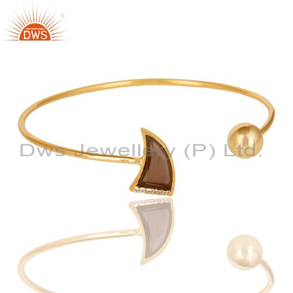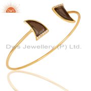 14K Gold Plated 925 Sterling Silver Handmade Smokey Topaz Zircon Cuff Bangle