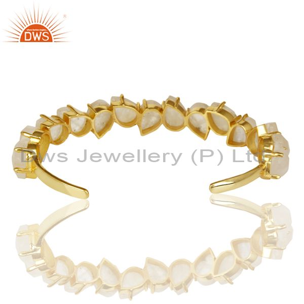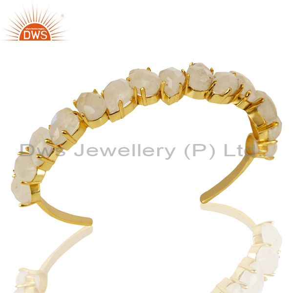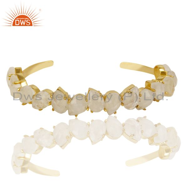14K Gold Plated Prong Set Rainbow Moonstone Cuff Bracelets