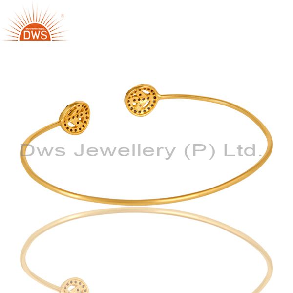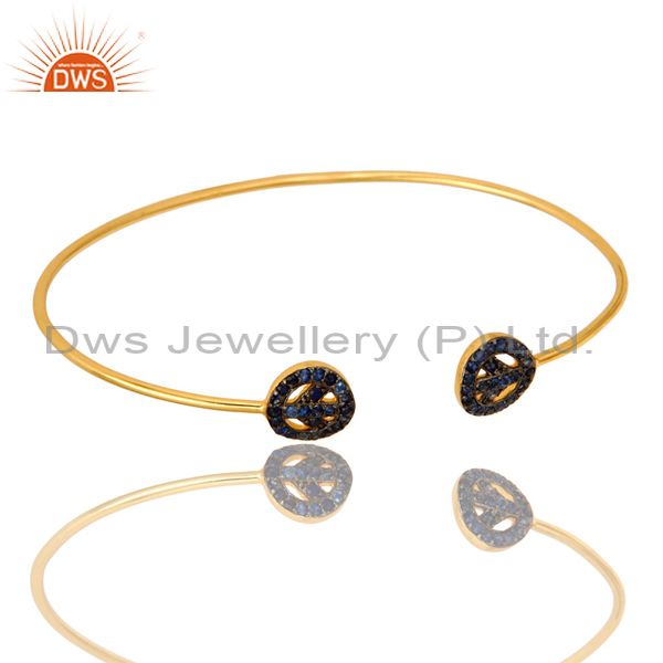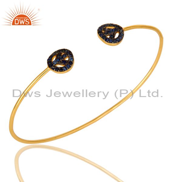 14K Gold Plated Sterling Silver Blue Sapphire Peace Sign Open Stack Bangle