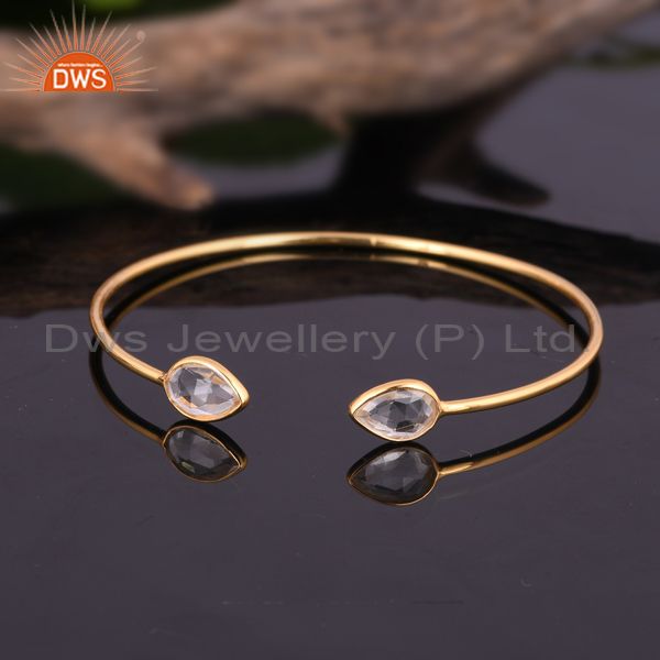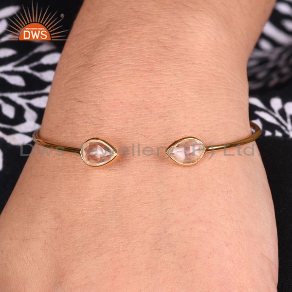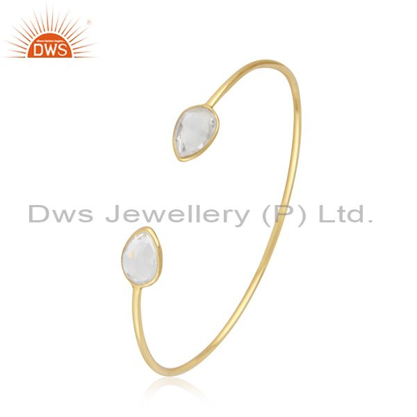14K Gold Plated Sterling Silver Crystal Quartz Simple Cuff Bangle Manufacturer