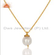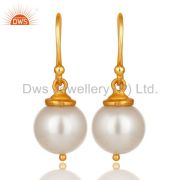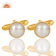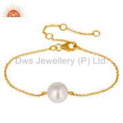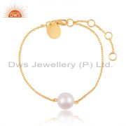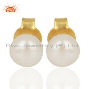 14K Gold Plated Sterling Silver Natural White Pearl Stackable Open Bangle