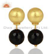 14K Yellow Gold Plated Sterling Silver Faceted Black Onyx Adjustable Bangle