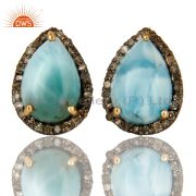 14K Yellow Gold Sterling Silver Larimar And Pave Diamond Stackable Open Bangle