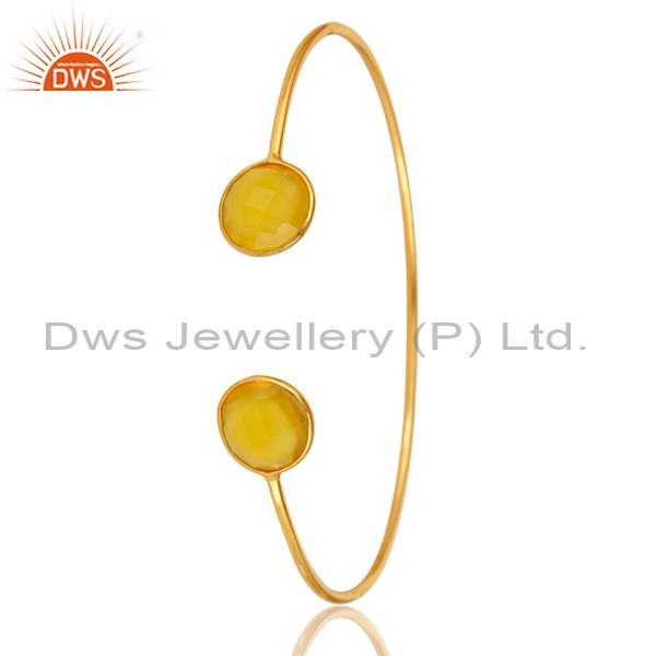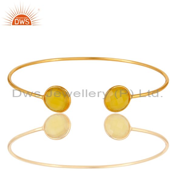18K Gold Over Sterling Silver Bezel-Set Yellow Chalcedony Bangle / Bracelet
