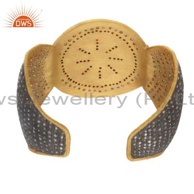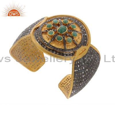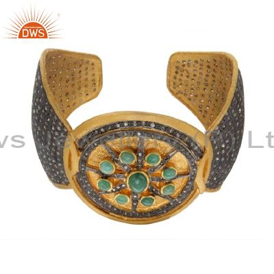 18K Gold Over Sterling Silver Pave Diamond And Emerald Antique Cuff Bracelet