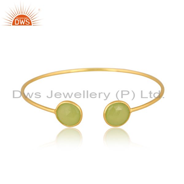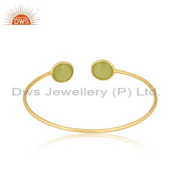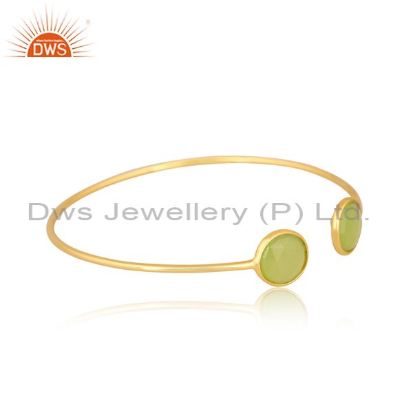 18K Gold Plated 925 Silver Chalcedony Gemstone Adjustable Cuff Bracelet Supplier