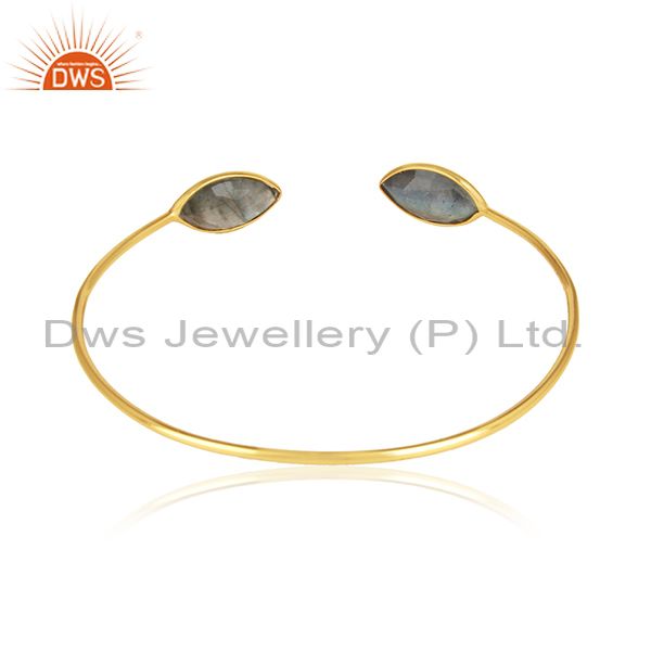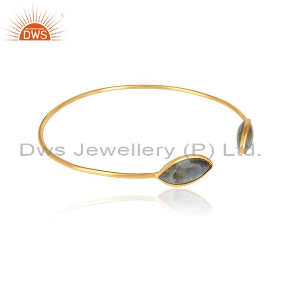 18K Gold Plated Silver Designer Labradorite Gemstone Cuff Bangles