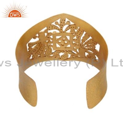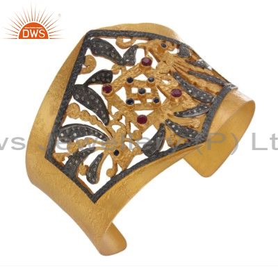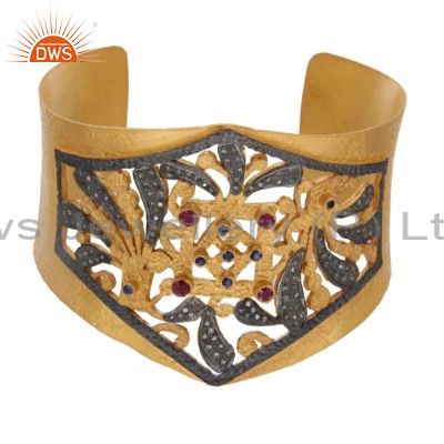 18K Gold Plated Sterling Silver Pave Diamond Ruby And Sapphire Bangle Bracelet