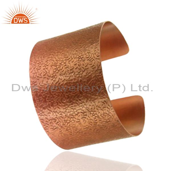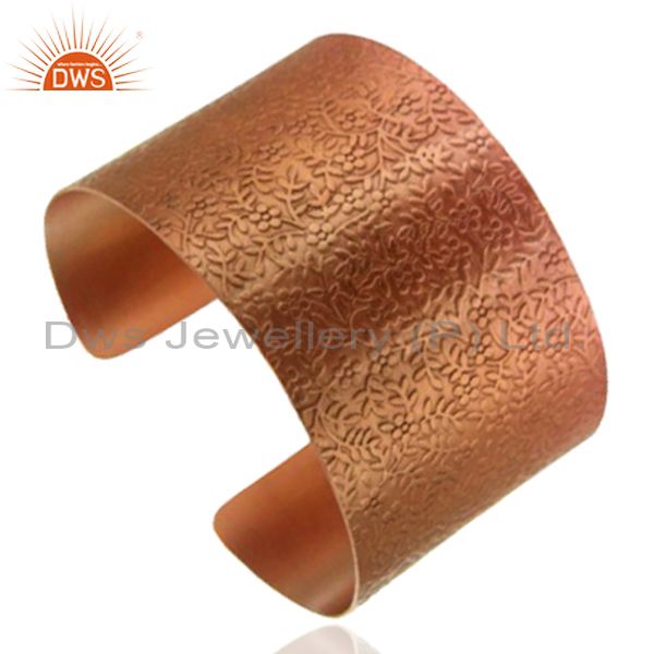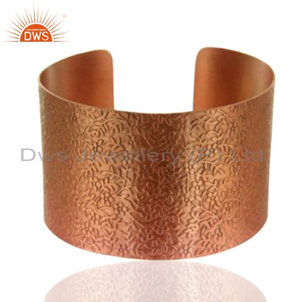 18K Rose Gold Plated Sterling Silver Floral Engraved Wide Cuff Bracelet
