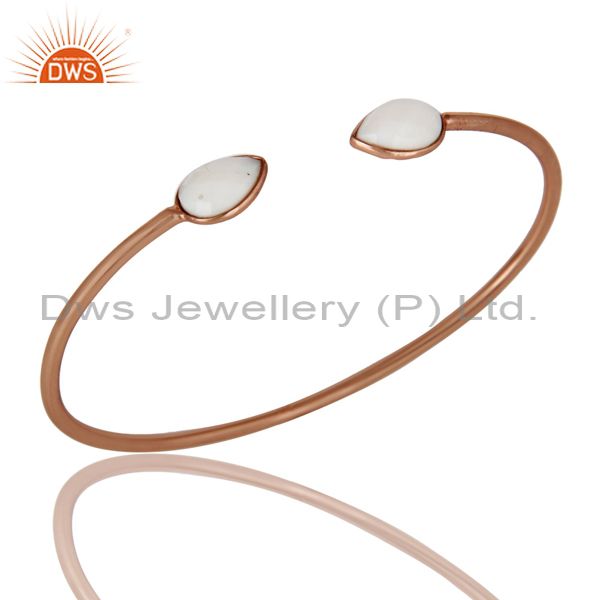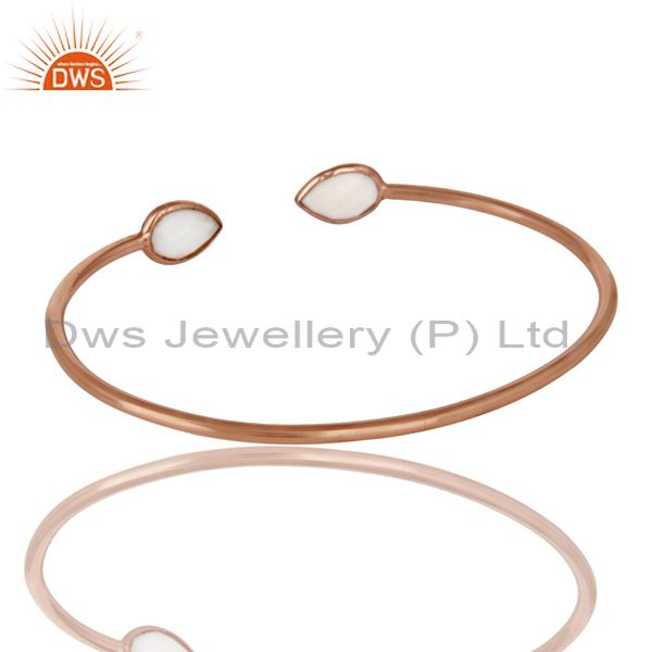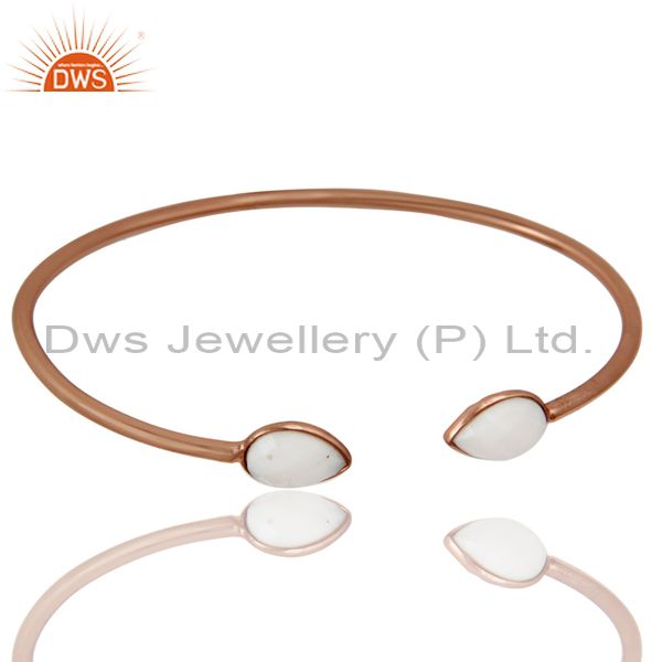 18K Rose Gold Plated Sterling Silver White Agate Stackable Open Bangle
