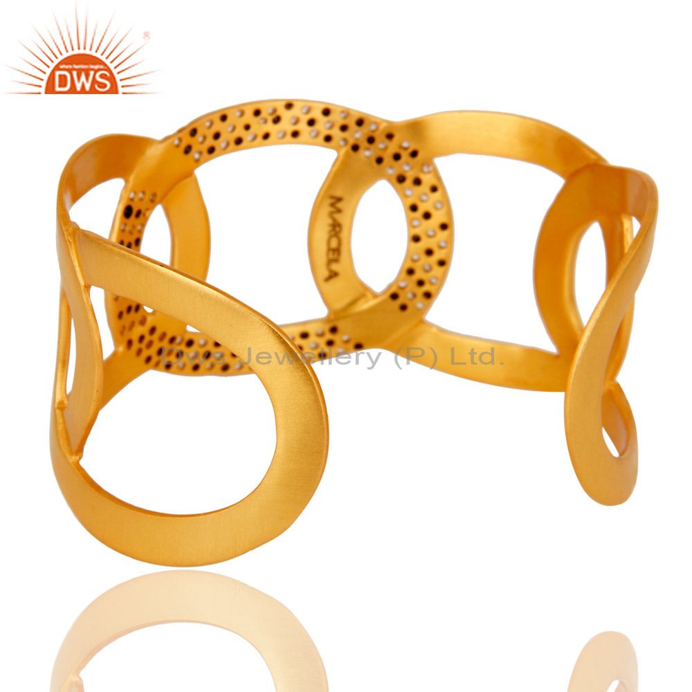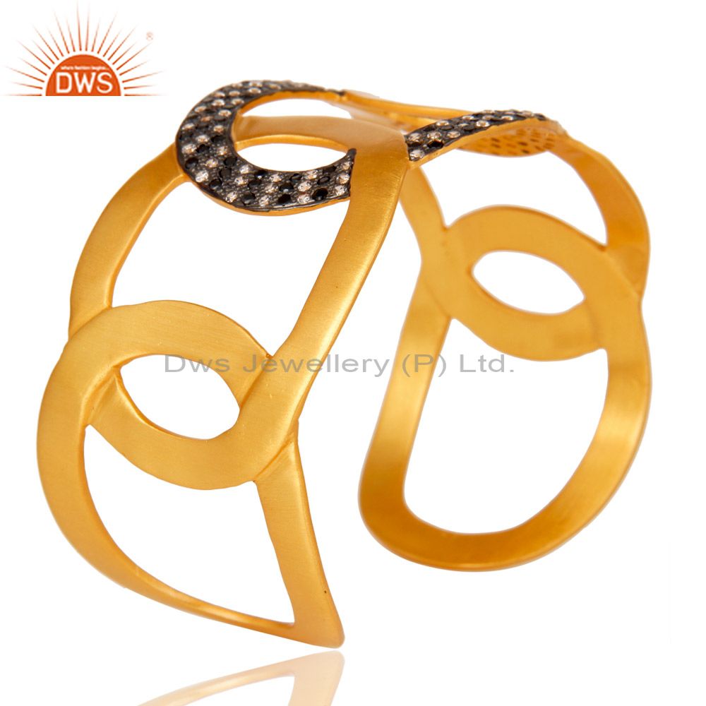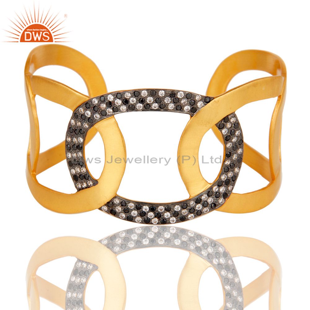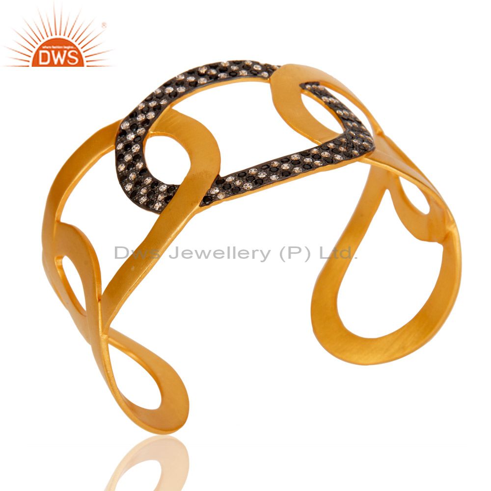 18K Yellow Gold Plated Designer Brass Cuff Bracelet Bangle With Cubic Zirconia