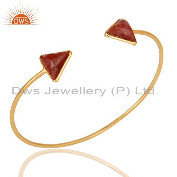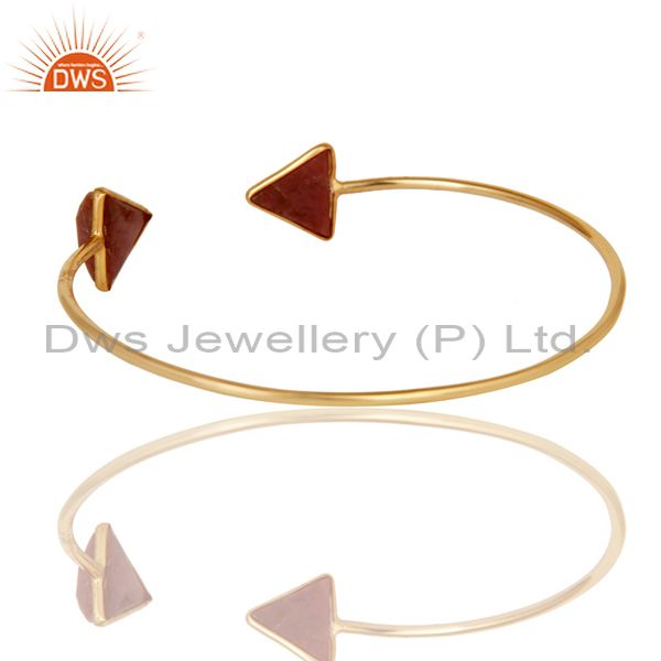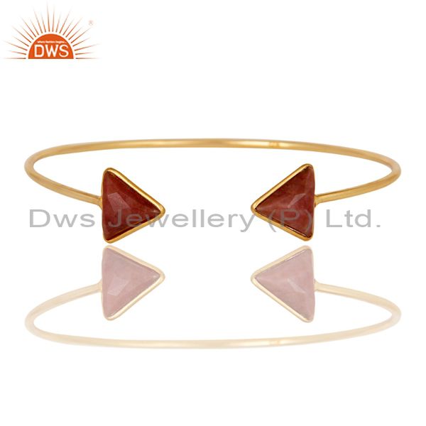 18K Yellow Gold Plated Handmade Rhodonite Gemstone Sleek Cuff Jewellery