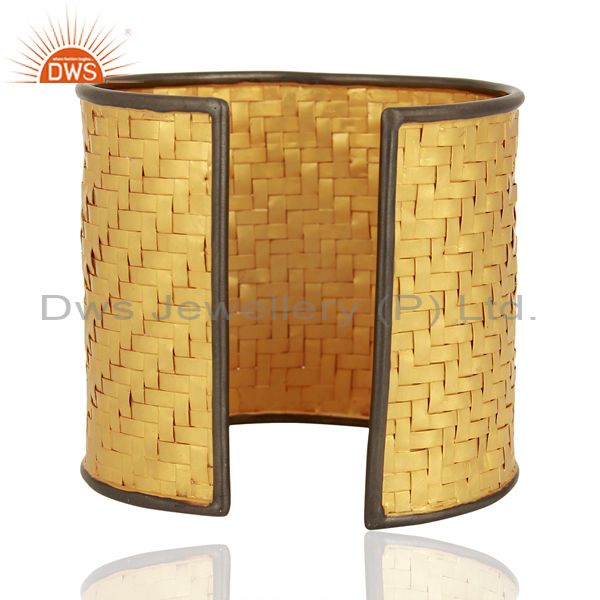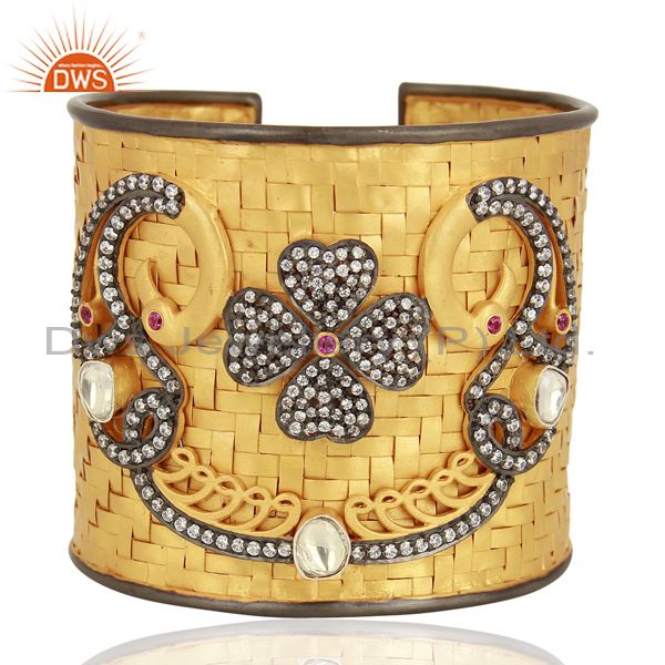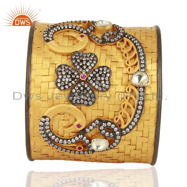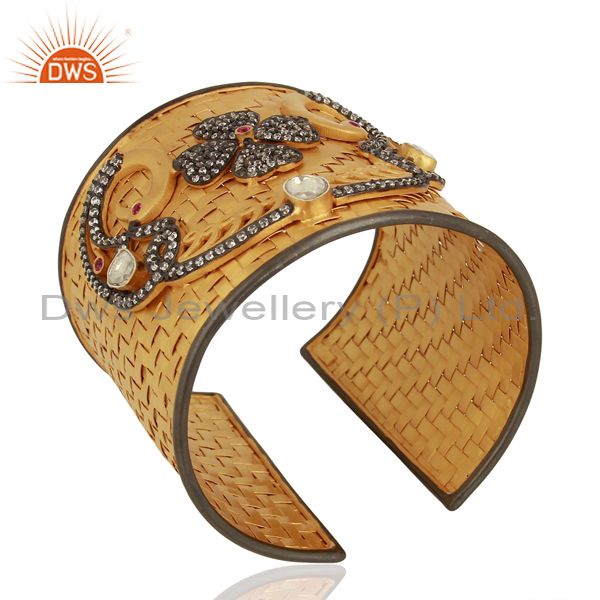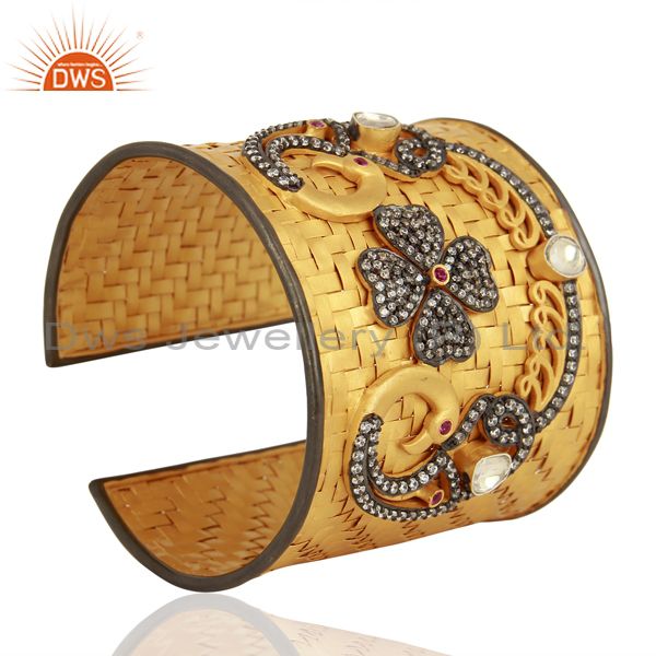 22K Gold Plated Sterling Silver Cubic Zirconia Designer Fashion Cuff Bracelet