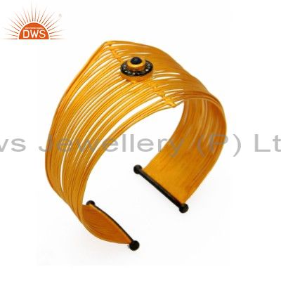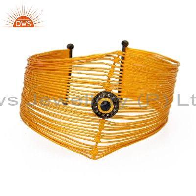 22K Gold Plated Sterling Silver Pave Diamond Blue Sapphire Wire Cuff Bracelet